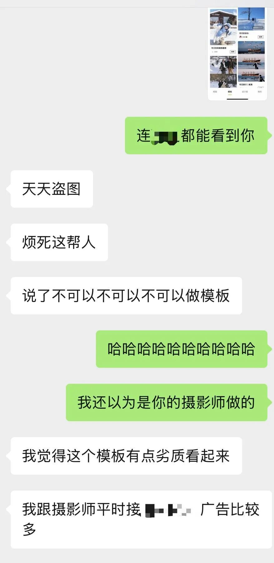 为了吸引更多用户使用App新推出的模板,模板的样张大都会选用博主照片,这中间也暗藏猫腻。出于对博主的尊重,App运营方大都会在使用前先询问授权,但粉丝体量较小,“拒绝”声音不够大的博主,被App运营方不管不顾、继续侵权使用也属常态。